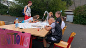 Und obwohl wir kurz vor dem Herbstanfang standen, feierten der Sommer und die Sonne nochmal ein Comeback. Daher strahlten die Sonne, Groß und Klein nochmal um die Wette, als zunächst die Schule ihre Türen öffnete und dann die Festlichkeiten beginnen konnten. "Erst die Arbeit, dann das Vergnügen", sagt ein bekanntes Sprichwort und so war es auch für die Schülerin und Schüler unserer Klassen. Zunächst zeigten Sie unseren BesucherInnen verschiedene Unterrichtsstunden und wie bei uns gelernt wird. Im Anschluss -und das hatten sich alle verdient- wurde dann zusammen gefeiert. Mit ganz viel leckerem Essen, Sport-, Spiel- und Bastelangeboten war wohl für jeden und jede etwas dabei.