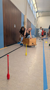 Ein ganz besonderer Tag an der KGS Rather Kreuzweg war der diesjährige "Trixitt - Sporttag". Zu sehen war das schon um 7:00 Uhr morgens als auf unserem Schulhof meterhohe, hüpfburgähnliche Gebilde in die Höhe gepustet wurden. An diesem Tag drehte sich bei uns alles um den Teamgedanken, Sport & Gemeinschaft. In unterschiedlichen sportlichen Disziplinen, die so von uns wohl noch keiner vorher gesehen hatte, konnten Kinder und Lehrer/Innen gemeinsam Punkte für unser Schulteam sammeln. Es gab einen Hindernisparcours, Menschenkicker, Zweifelderball, Basketball uvm.